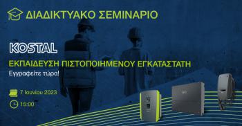 Απόκτησε ή ανανέωσε την πιστοποίηση εγκαταστάτη φωτοβολταϊκών από την KOSTAL, δηλώνοντας συμμετοχή στο διαδικτυακό σεμινάριο που θα πραγματοποιηθεί την Τετάρτη 7 Ιουνίου 2023, και ώρα 15:00.