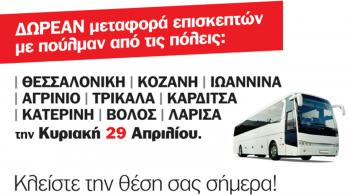Η έκθεση DOMOTEC, η μεγάλη έκθεση για την ανακαίνιση, την δόμηση και την εξοικονόμηση ενέργειας, προσφέρει δωρεάν μεταφορά από επιλεγμένες πόλεις της ελληνικής περιφέρειας, για την διευκόλυνση των επισκεπτών της!