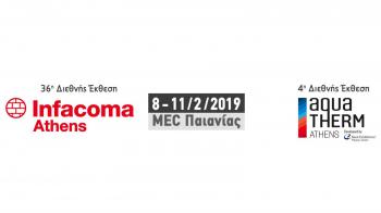 Οι εκθέσεις Infacoma & Aquatherm Athens 2019, που σηματοδοτούν τις εξελίξεις στους τομείς της δόμησης και της ενέργειας αντίστοιχα, θα πραγματοποιηθούν και φέτος από τις 8 έως και τις 11 Φεβρουαρίου 2019 στο MEC Παιανίας.