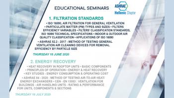 Το Ελληνικό Παράρτημα της ASHRAE διοργανώνει την Πέμπτη 18 του Ιουνίου, 2020, στις 17:00, το πρώτο e - Technical Seminar της με τίτλο «ΠΡΟΤΥΠΑ ΦΙΛΤΡΑΡΙΣΜΑΤΟΣ & ΑΝΑΚΤΗΣΗ ΕΝΕΡΓΕΙΑΣ».