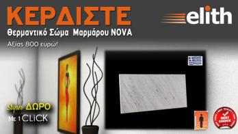 Ο μεγάλος νικητής του Θερμαντικού Σώματος Μαρμάρου NOVA MH-09, αξίας 800 ευρώ, μίας μοναδικής προσφοράς από την εταιρεία Elith, είναι ο κ. Δημήτρης Ζαρογιάννης.