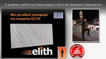 Ο μεγάλος νικητής του Θερμαντικού Σώματος Μαρμάρου NOVA MH-09, αξίας 800 ευρώ, μίας μοναδικής προσφοράς από την εταιρεία Elith, είναι ο κ. Δημήτρης Ζαρογιάννης.
