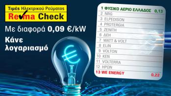 «Φαρμακείο» τιμή στις χρεώσεις KW για το Νοέμβριο από WeEnergy. Στην τελευταία θέση κατάταξης μεταξύ των 12 παρόχων ηλεκτρικού ρεύματος. Στην πρώτη θέση, με καλύτερη χρέωση μήνα, η «Φυσικό Αέριο Ελλάδας».